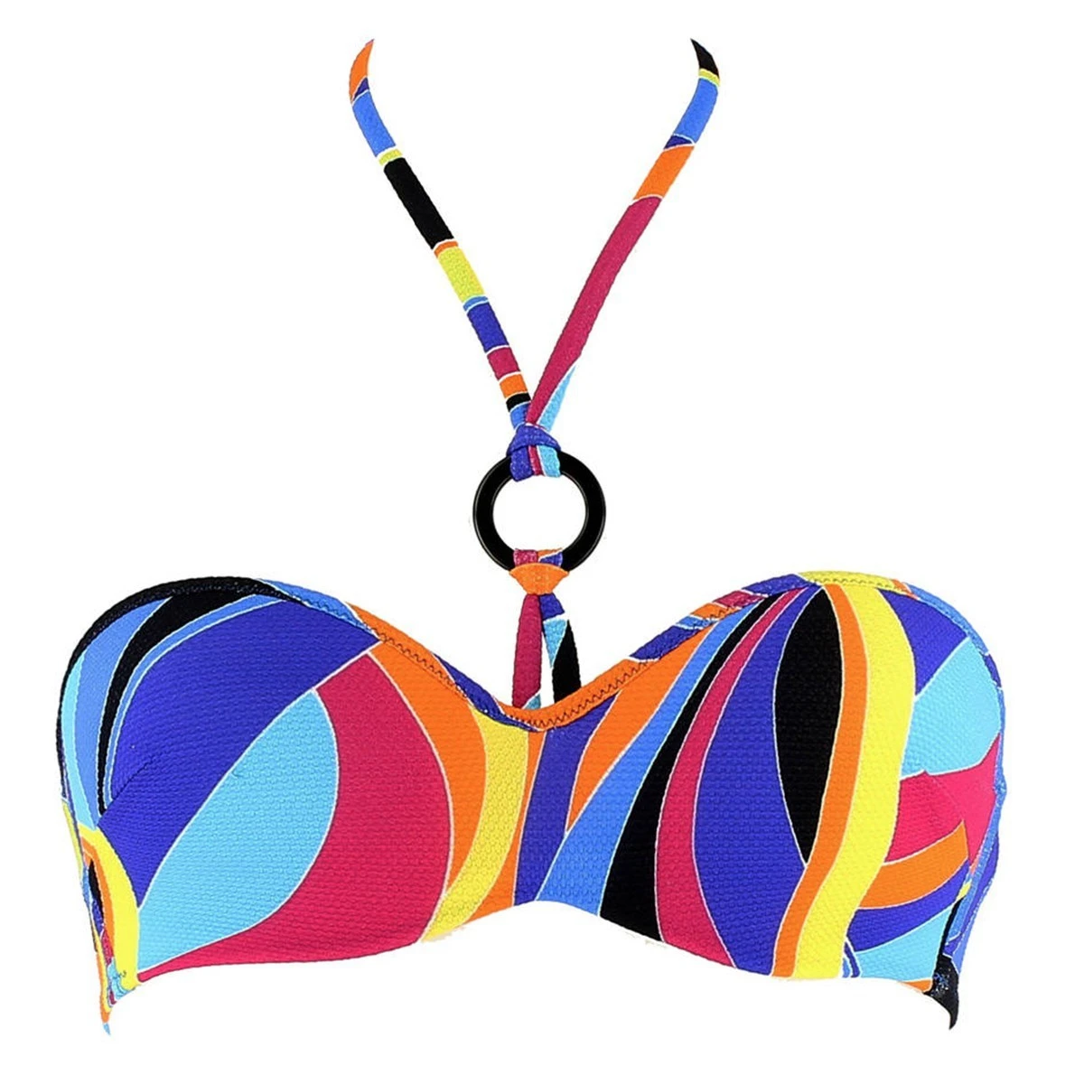 Le fantastique haut de maillot de bain en maille texturée La sporty tropique d’Antigel de Lise Charmel nous séduit par ses couleurs vitaminées ! On adore ce bandeau de bain à armatures et bonnets paddés qui peut se porter de diverses façons grâce à ses bretelles amovibles : tour de cou ou tout simplement sans bretelles du tout pour un bronzage optimal des épaules.
