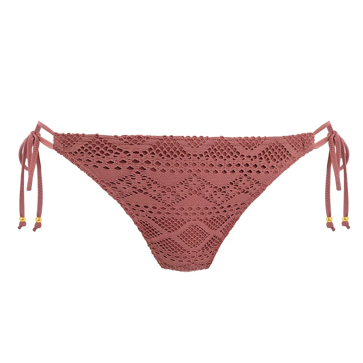 Le bas de maillot de bain à nouettes Sundance nutmeg de Freya Swim nous charme cette saison par son coloris noix de muscade qui surfe sur la tendance nature zen. On aime toujours autant ce bas de bikini effet crochet avec ses liens réglables qui permettent un ajustement parfait en fonction de vos éventuelles variation de poids !