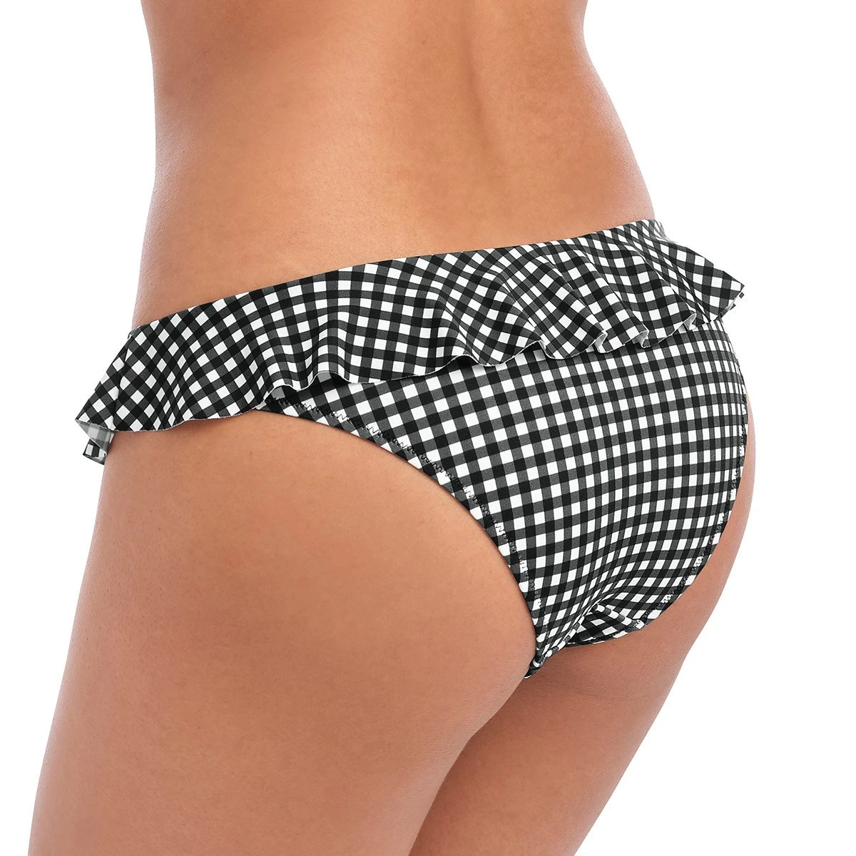 Bas De Bikini Vichy à Volants Check In Monochrome