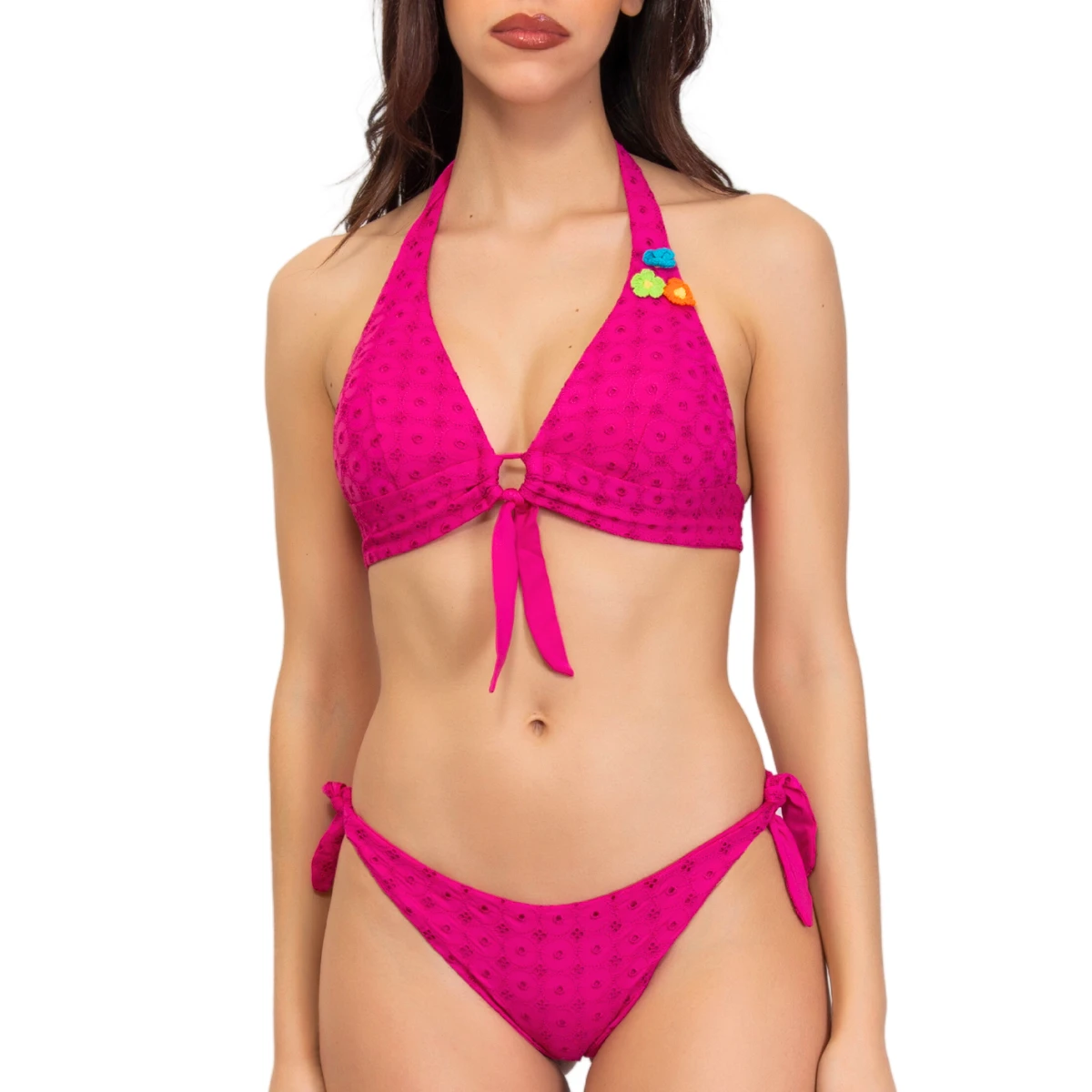 Voici le bas de bikini brésilien Sangallo fuchsia de Verdissima, le complément parfait de votre garde-robe d’été ! Ce bas de maillot se distingue notamment par sa broderie anglaise fuchsia qui apporte une touche unique et sophistiquée. Sa taille basse et sa forme brésilienne permettent de révéler vos courbes tout en subtilité. D’ailleurs, ses nouettes latérales offrent un ajustement parfait à votre silhouette. Sa qualité premium et son design chic et colorée en font un must pour toutes les adeptes de la plage à la pointe de la mode. Commandez-le dès aujourd’hui !