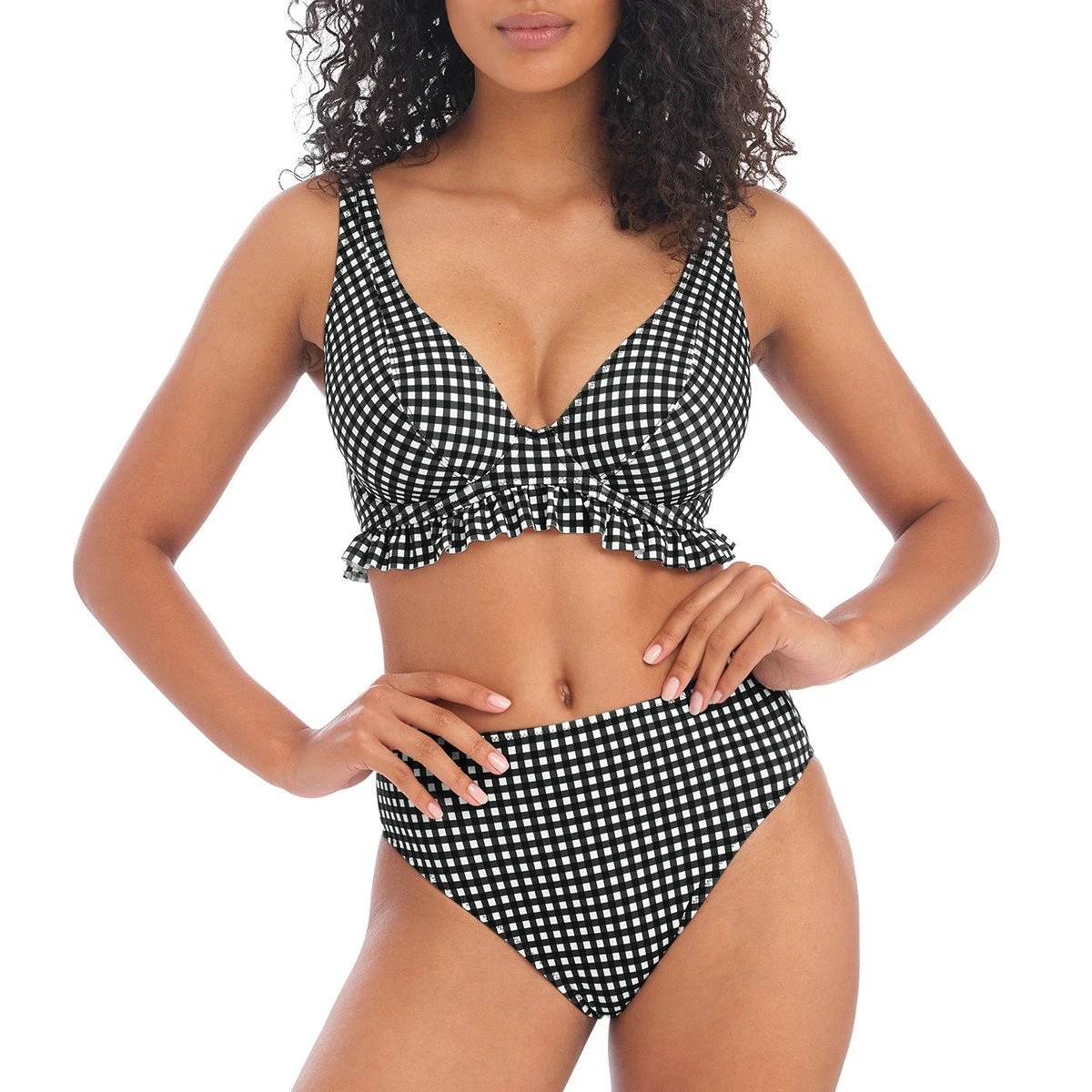 La culotte de bain Check in monochrome de Freya Swim nous séduit par sa taille haute au style rétro ! Coup de coeur pour son superbe imprimé vichy ultra tendance ! On aime sa coupe qui enveloppe bien le ventre et la taille tout en gardant une bordure des jambes bien échancrée. A assortir avec un des nombreux hauts de la même collection ou avec un haut de maillot uni pour un look mix and match.