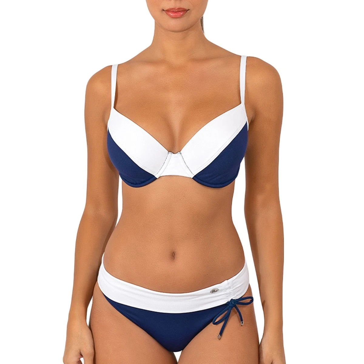 Le bas de maillot de bain Marine de la marque Sun Playa nous séduit par son look nautique chic ! Très astucieuse, cette culotte de bain bicolore possède une ceinture à revers qui peut se porter dépliée ou rabattue pour une taille plus ou moins haute. Coup de coeur pour le petit lien réglable qui fronce la ceinture selon vos envies.