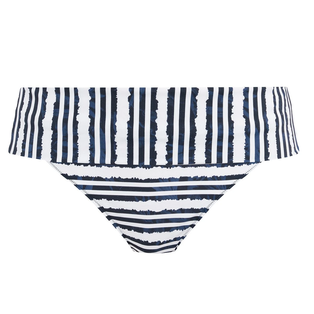 Très astucieuse, la culotte de bain Sunshine coast french navy de Fantasie Swim possède une ceinture à rabat que vous pourrez moduler si vous souhaitez plus ou moins cacher votre ventre. On adore les rayures marine sur fond blanc. On aime ce bas de maillot intelligent, entièrement doublé, qui sublime les formes sans y paraitre…