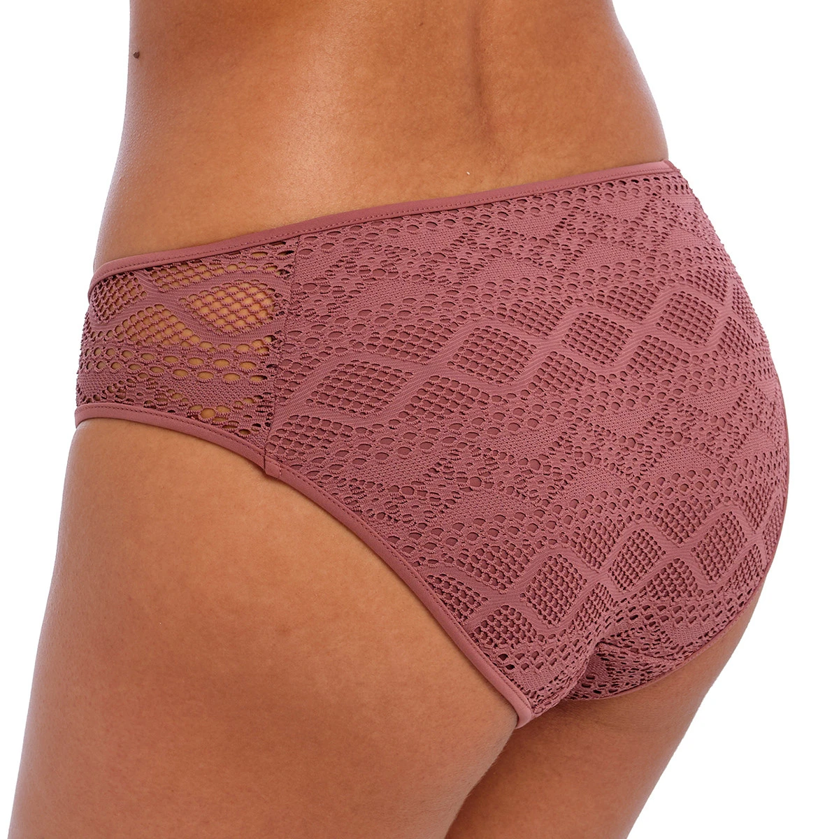 Cette saison l’incontournable bas de maillot de bain Sundance de Freya Swim est décliné en coloris nutmeg, un joli marron sépia qui évoque le bien-être et la nature. On aime sa taille basse féminine et on apprécie sa doublure qui assure confort et discrétion. Sa maille crochet ajourée sur les côtés flatte la silhouette.