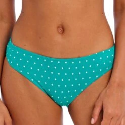 La culotte de bain Jewel cove marine de Freya Swim nous séduit par son superbe coloris vert jade imprimé de losanges blancs. On apprécie sa coupe confortable qui repose sur les hanches et flatteuse au niveau des jambes. A assortir idéalement avec le haut de maillot de bain de la même collection.