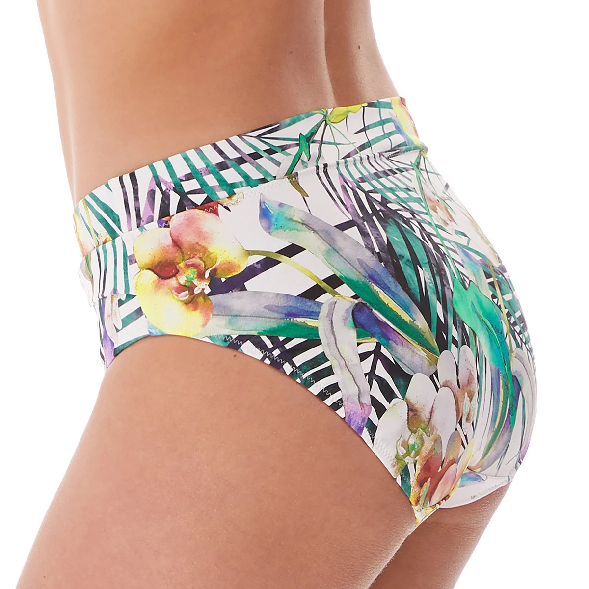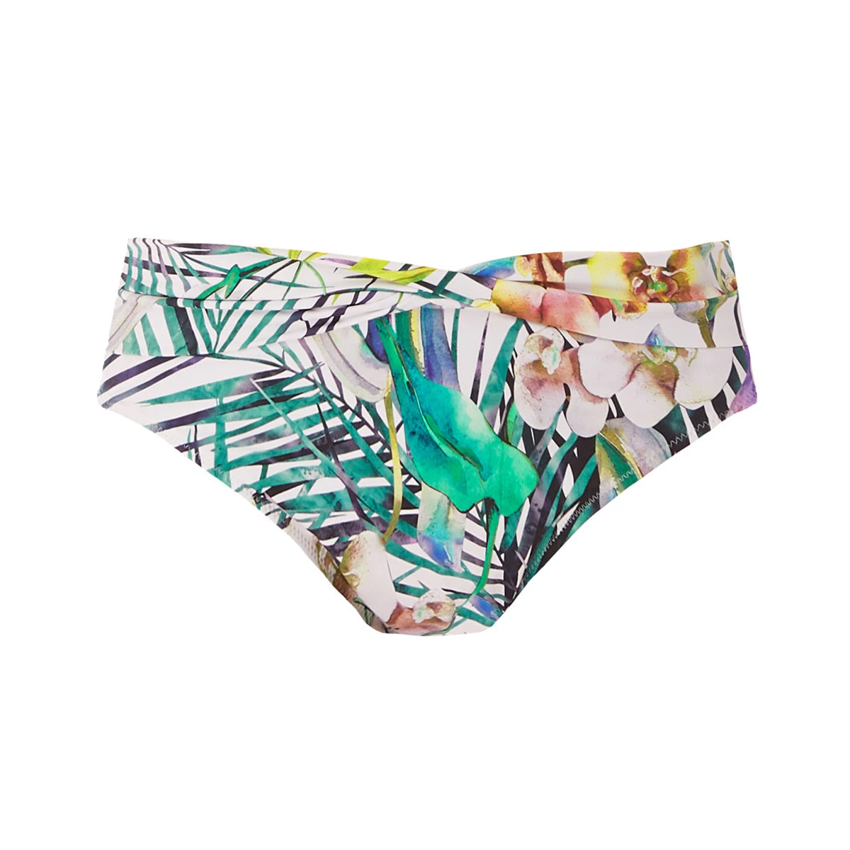 La culotte de bain Playa blanca multi de Fantasie swimwear est un bas de maillot très élégant. On adore l’imprimé exotique sur fond blanc ainsi que l’originalité de la ceinture twistée. Cette culotte de bain mi-couvrante possède une coupe confortable et une matière de haute qualité qui résiste à l’usure du temps.