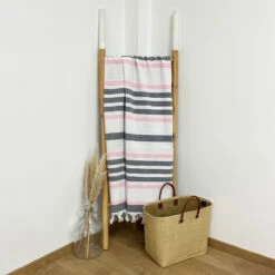 Fouta Traditionnelle En Coton 1x2m Unie à 3 Rayures Kozo Tile