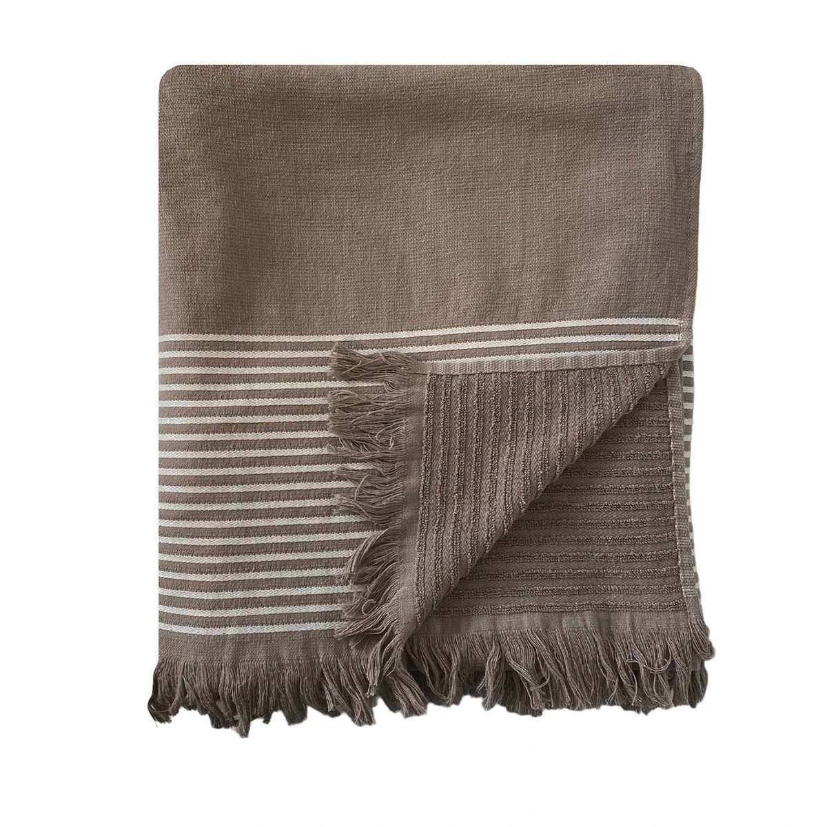 Fouta 0,90×1,70m Tissage Nid D’abeille 300 Gr Doublée éponge Paski Taupe