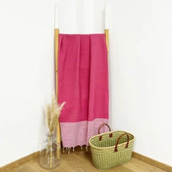 Fouta Traditionnelle En Coton 1x2m En Nid D’abeille Mikanda Fuchsia