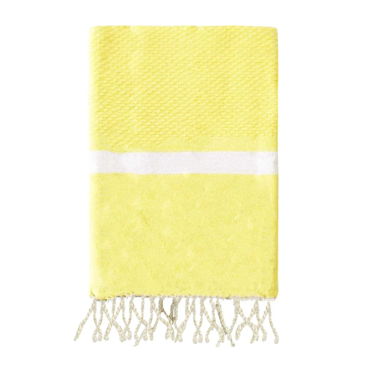 La Fouta traditionnelle Melissa en 100×200 cm couleur Poussin du Comptoir de la Plage est élégante et raffinée. En serviette de plage, piscine, sauna, etc … ou même en paréo, elle va devenir l’accessoire incontournable de votre été. En 100% coton, son tissage en nid d’abeille et son grammage de 190gm² offrent une grande capacité d’absorption et permet un séchage rapide.
