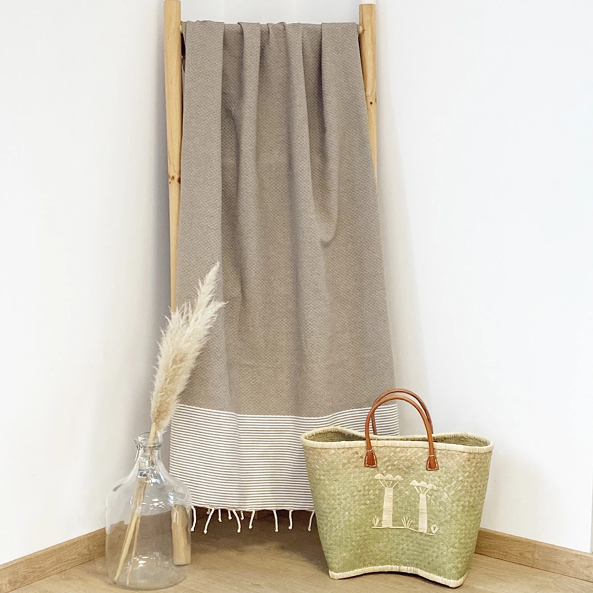 Fouta Traditionnelle En Coton 1x2m En Nid D’abeille Mikanda Taupe