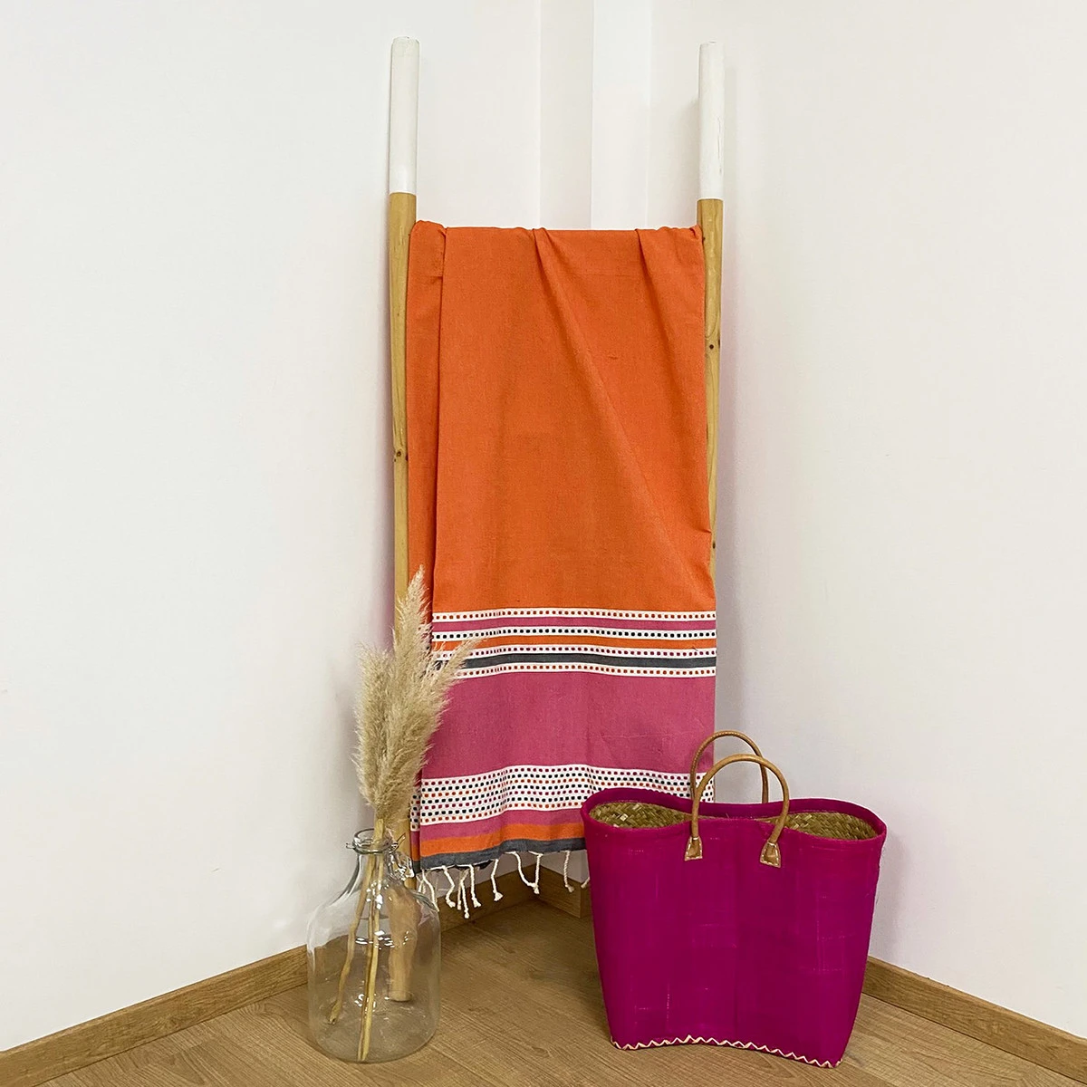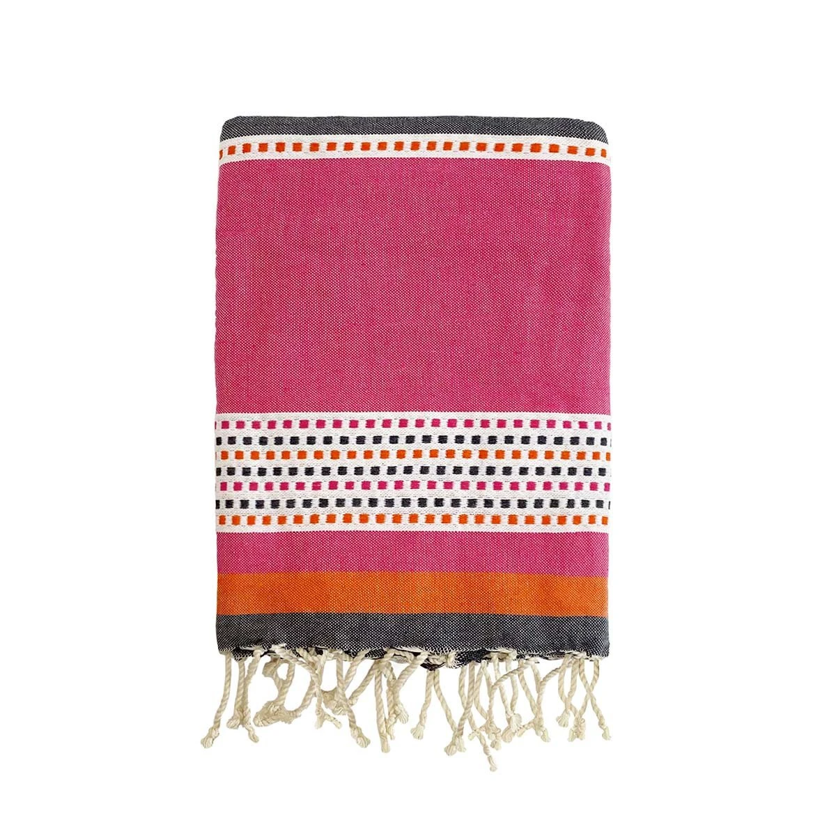 La Fouta plate traditionnelle Banado en 100×200 cm couleur Orange en 100% coton est devenue l’incontournable de votre été. De couleur orange et fuchsia, et aux motifs pointillés, elle est idéale pour la plage ou le bord de la piscine. Elle se noue facilement autour de la taille pour se transformer en paréo. Son grammage de 190gm² offre une grande capacité d’absorption et permet un séchage rapide.