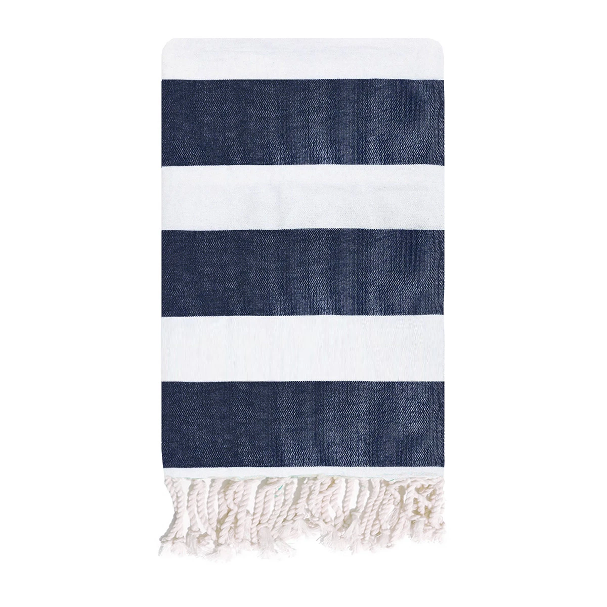 Fouta Traditionnelle En Coton 1x2m Tissage Plat Transat Bleu Marine