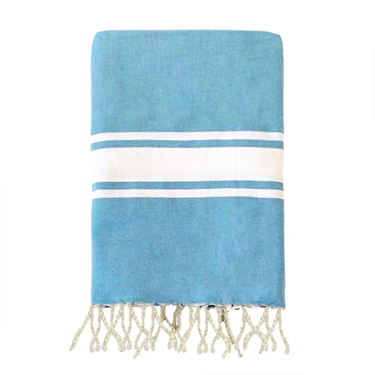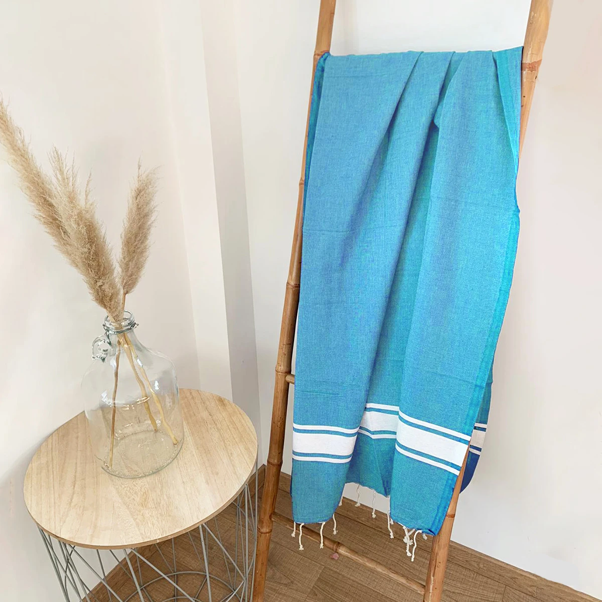 Fouta Traditionnelle En Coton 1x2m Unie à 3 Rayures Kozo Azur
