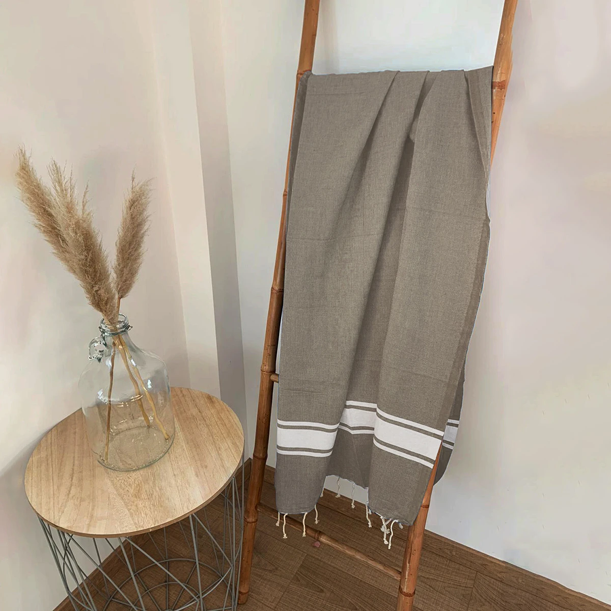 Fouta Traditionnelle En Coton 1x2m Unie à 3 Rayures Kozo Taupe