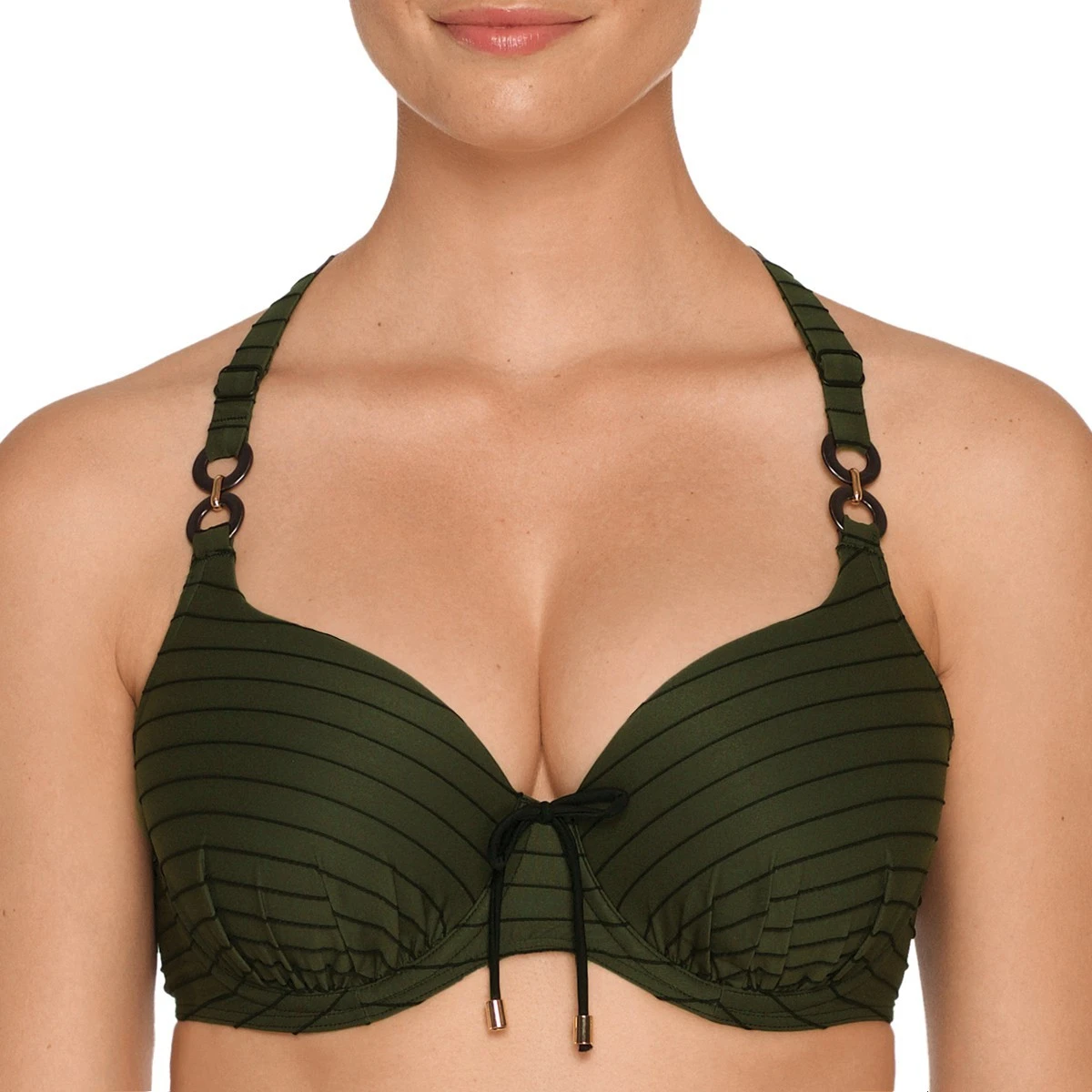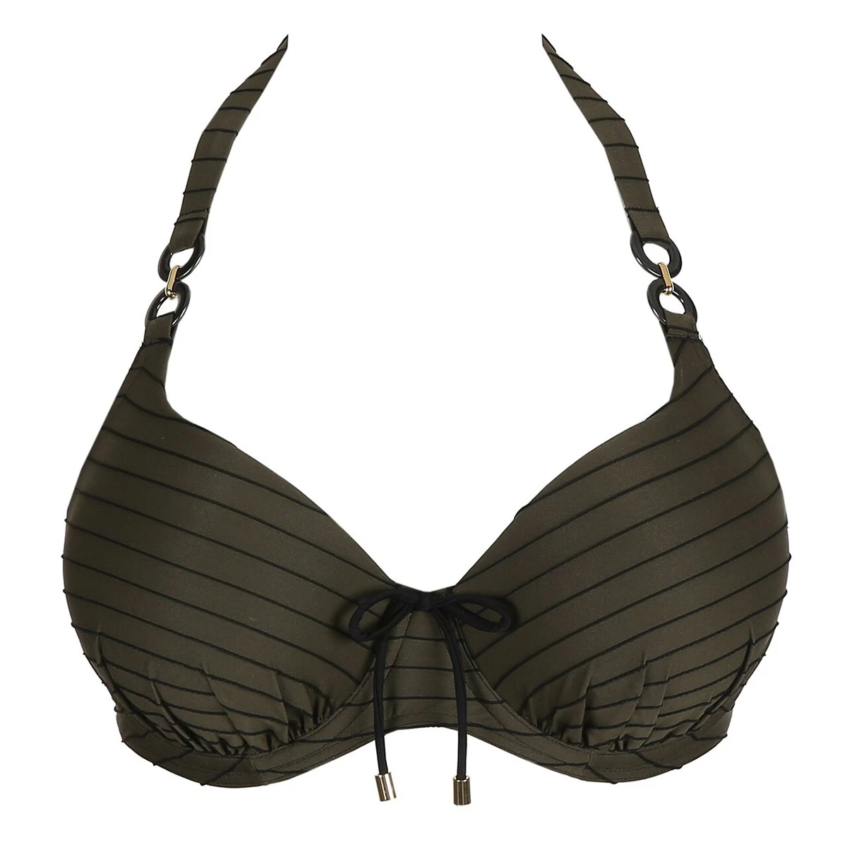 Le haut de maillot de bain bonnets moulés Sherry kaki de PrimaDonna Swim nous séduit avec la découpe en coeur de son décolleté pour un effet ultra glamour ! Ce haut de bikini, à bonnets préformés, est coupé dans une maille texturée à rayures très chic ! On craque pour les anneaux dorés à l’origine des bretelles qui peuvent aussi se porter en tour de cou pour un look tendance et élégant !