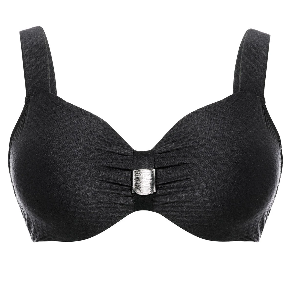 Le haut de maillot de bain St. Tropez noir de Ulla Dessous est un soutien-gorge de bain ultra chic conçu spécifiquement pour les grandes tailles. Fabriqué avec des matières de haute qualité, ce haut de bikini possède des armatures cachées qui maintiennent la poitrine en toute discrétion jusqu’au bonnet K. Coup de coeur pour la maille texturée et les larges bretelles rembourrées.