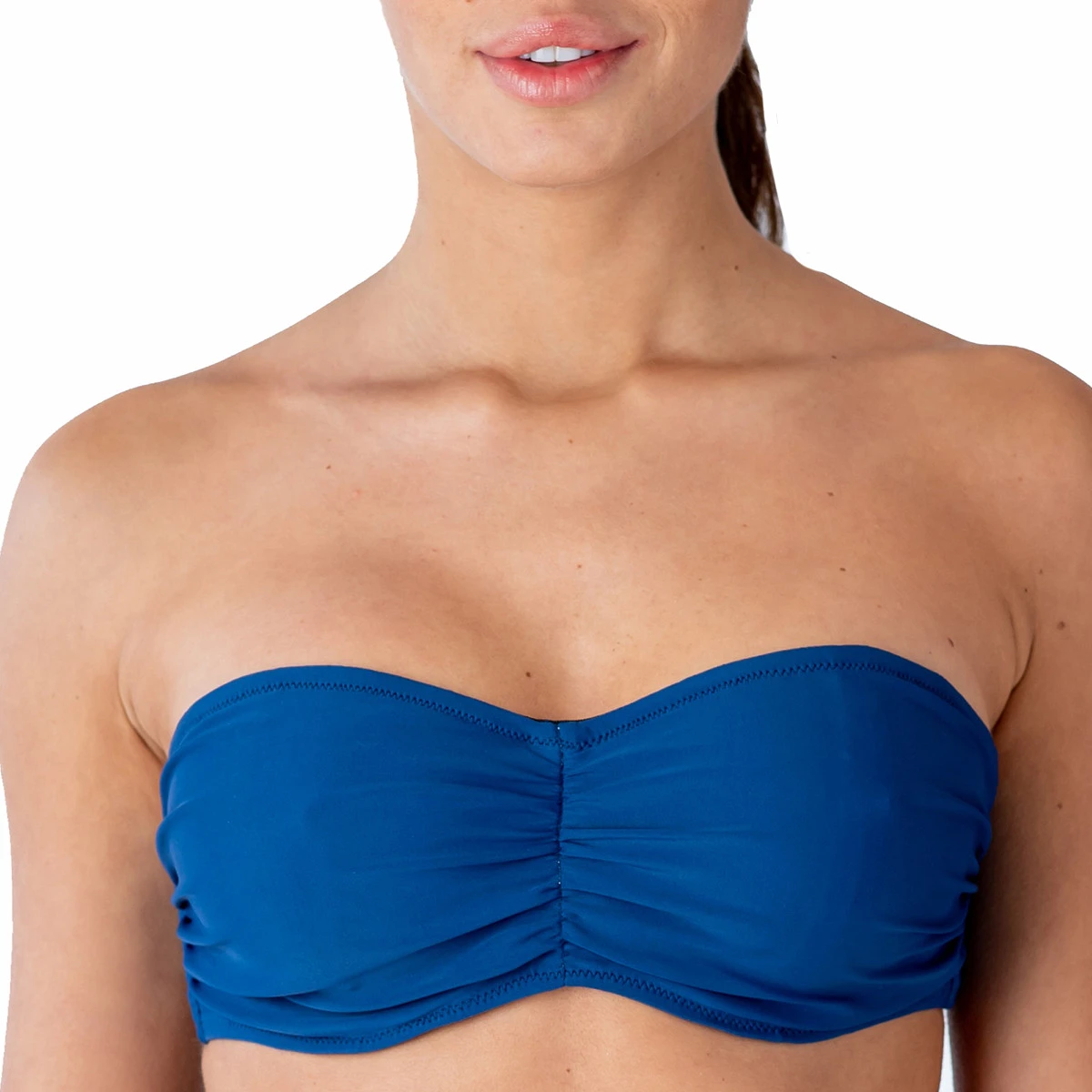 Le haut de maillot de bain à armatures Cartagena de la marque espagnole Deidad est un haut de maillot bandeau avec des bretelles amovibles. On apprécie la couture à l’entre-seins ainsi que les fronces qui donnent une belle forme à la poitrine. Son coloris uni bleu marine est intemporel et pourra s’assortir avec une multitude de bas !