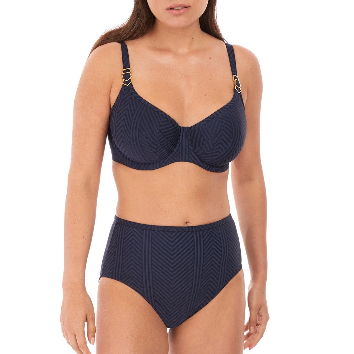 Le haut de maillot de bain Long island ink de Fantasie Swim nous séduit par son style très élégant ! On adore la maille texturée au motif chevrons et les détails géométriques en zamac doré au départ bretelles (ne chauffe pas au soleil). Ce haut de bikini ultra chic est conçu pour répondre à toutes les exigences de maintien jusqu’au bonnet K.