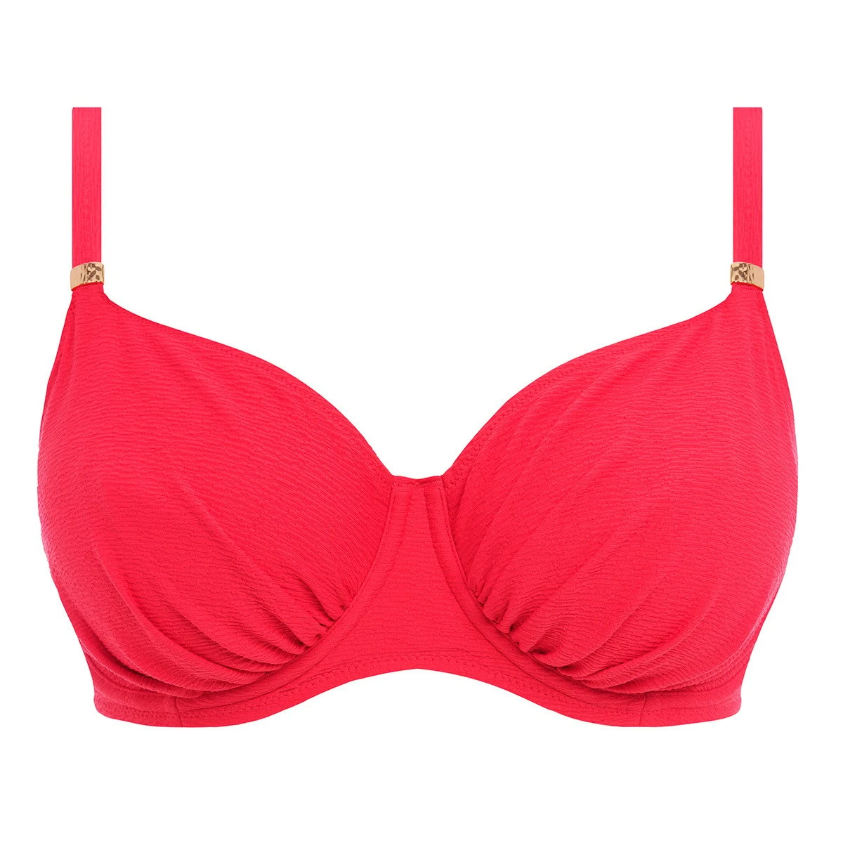 Le haut de maillot de bain Almeria watermelon de Fantasie Swim nous séduit par sa maille texturée et son coloris très féminin. On apprécie ses bonnets emboîtants et ses renforts latéraux cachés qui réhaussent les poitrines généreuses ! Coup de coeur pour les bonnets plissés flatteurs pour la silhouette et les détails dorés au départ bretelles.