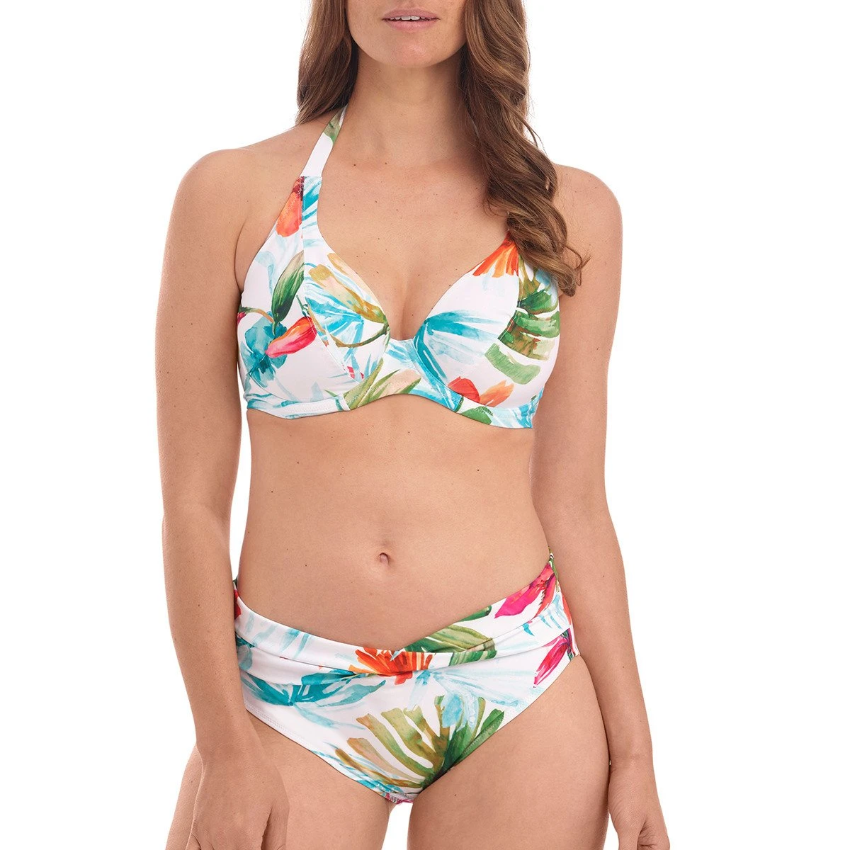 Avec son imprimé exotique sur fond blanc, le haut de maillot de bain Kiawah island aquamarine de Fantasie Swim est un atout incomparable pour sublimer votre bronzage ! Ce haut de bikini plongeant à armatures possède des bonnets doublés conçus pour répondre à toutes les exigences de maintien pour les fortes poitrines.