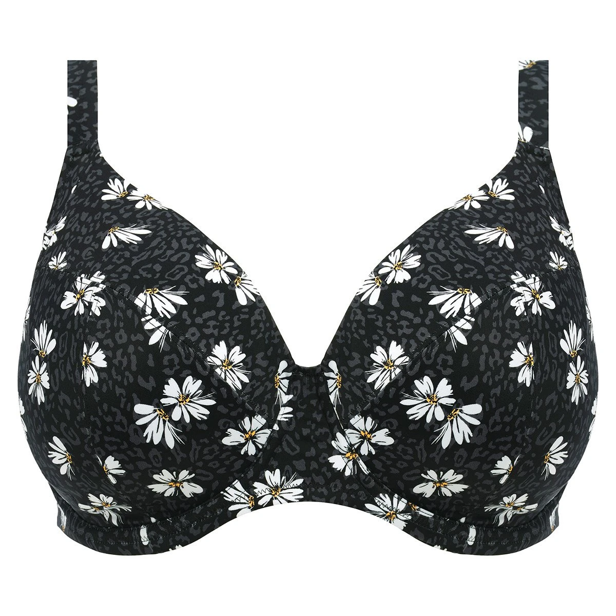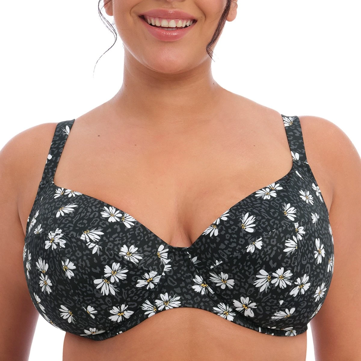 Le haut de maillot de bain Plain Sailing black daisy d’Elomi Swim nous charme par le motif léopard gris foncé qui ajoute subtilement de la profondeur au fond noir ainsi que les pâquerettes blanches qui réveillent l’imprimé ! Ce soutien-gorge de bain grande taille à armatures apporte un maintien optimal aux fortes poitrines. On adore la coupe plongeante qui sublimera votre décolleté.