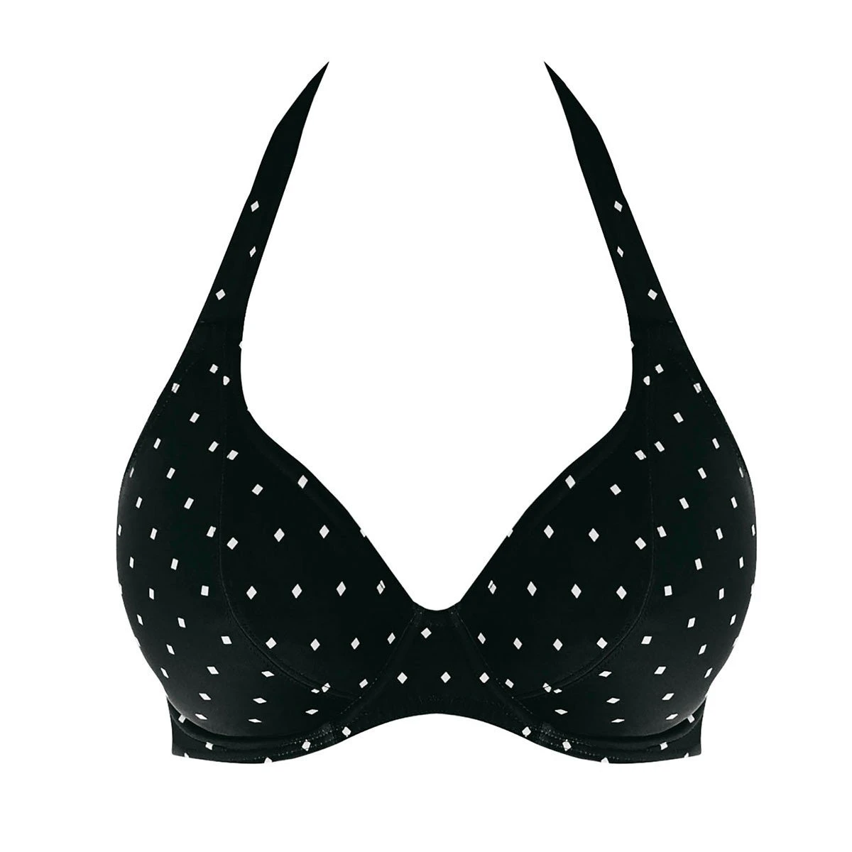 Le haut de maillot à armatures Jewel cove noir de Freya Swim possède un imprimé avec de petits carrés ultra tendance. On aime le décolleté plongeant et la coupe tour de cou qui laisse les épaules dégagées. On apprécie les bonnets doublés de tissu Powernet qui favorise le maintien et apporte un joli galbe.