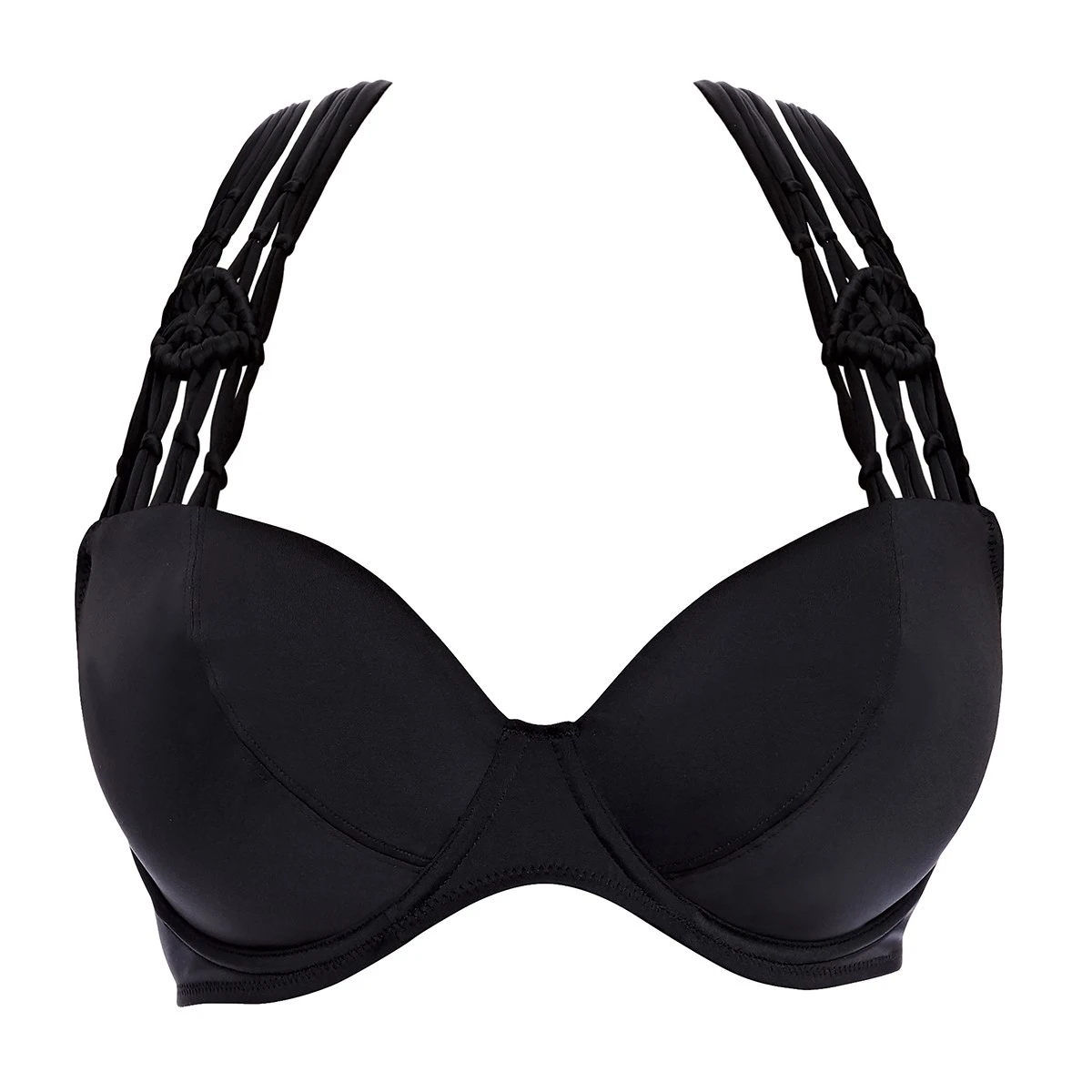 Le haut de bikini tour de cou Macramé noir de Freya Swim nous charme par ses bretelles macramés qui apportent beaucoup d’originalité à ce modèle. Ce haut de maillot à armatures possède des bonnets paddés qui assurent une jolie forme arrondie de la poitrine ainsi qu’un maintien parfait. On adore le décolleté plongeant qui ajoute beaucoup de féminité à ce modèle.
