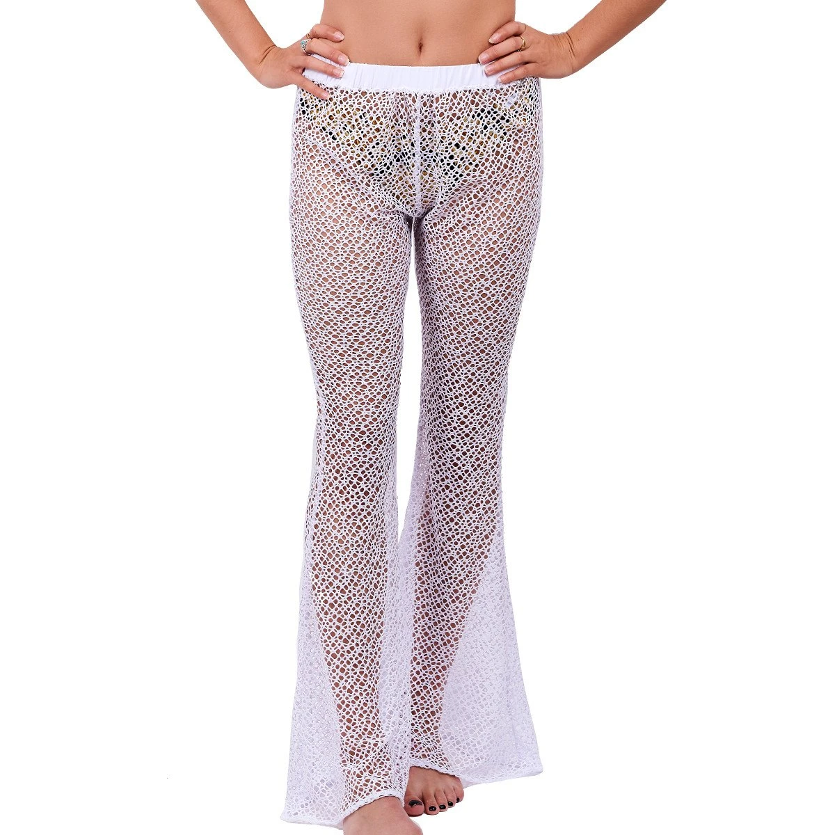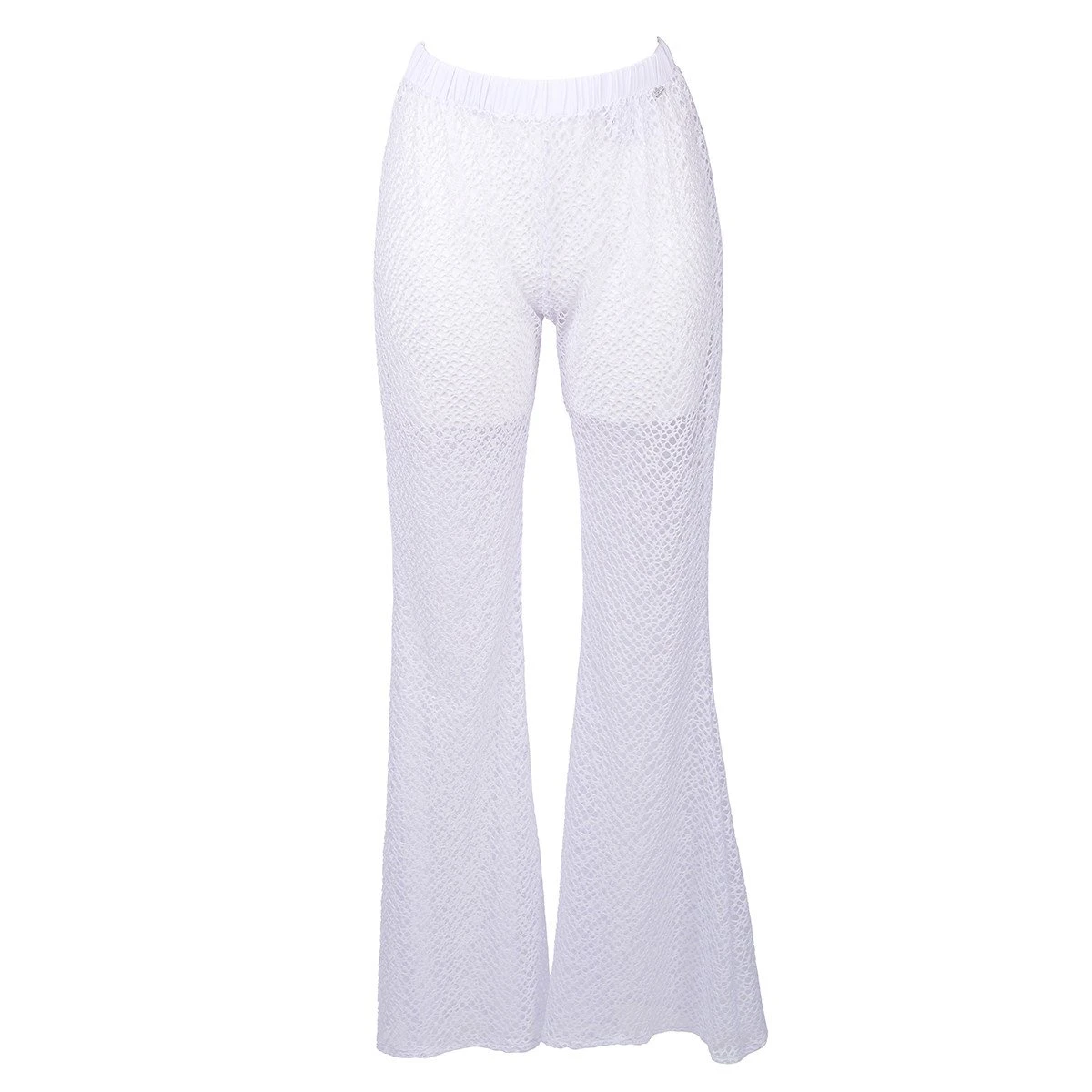 Pantalon De Plage Maille Filet Pailletée Diadème Blanc