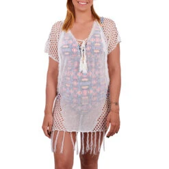 La tunique longue de plage Angelina écru de la marque LPB Les P’tites Bombes possède une maille crochet qui vous donnera un look bohème chic. On adore le décolleté plongeant et les fentes sur les côtés qui apportent beaucoup de féminité à ce modèle. Cette tenue de plage confortable sera parfaite pour vos balades au bord de l’eau.