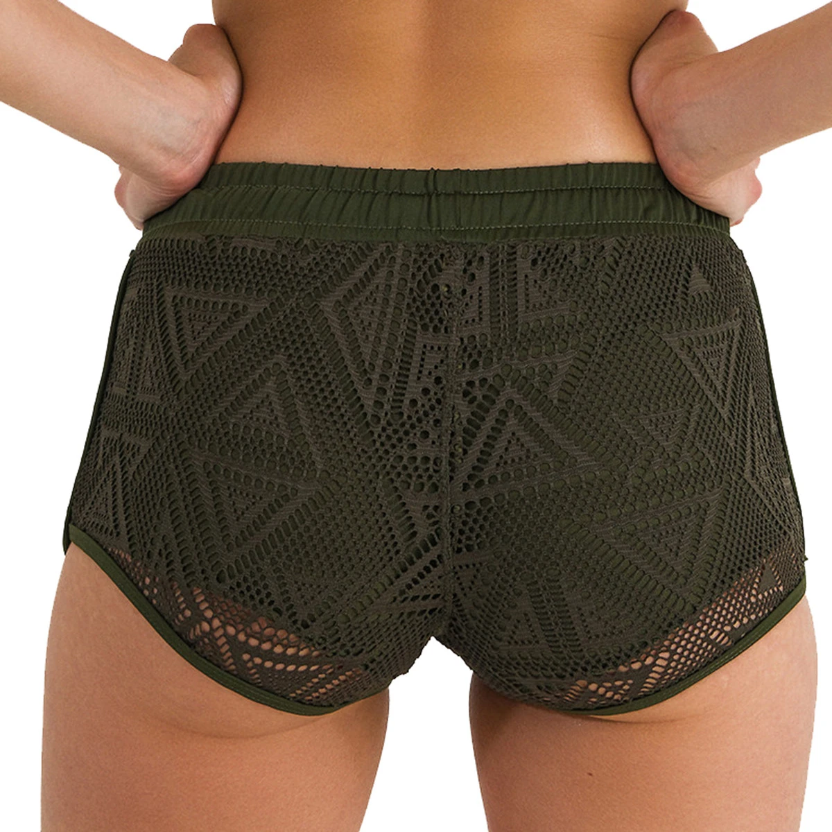 Le short de plage Charlotte kaki de la marque Nana Sun nous séduit par sa maille effet crochet qui lui donne un look bohème chic ! On apprécie la doublure qui assure une opacité totale et le lien de serrage à la taille qui permet un ajustement parfait. Coup de coeur pour les petits bijoux fantaisie au bout des liens qui apportent un charme fou à ce modèle.
