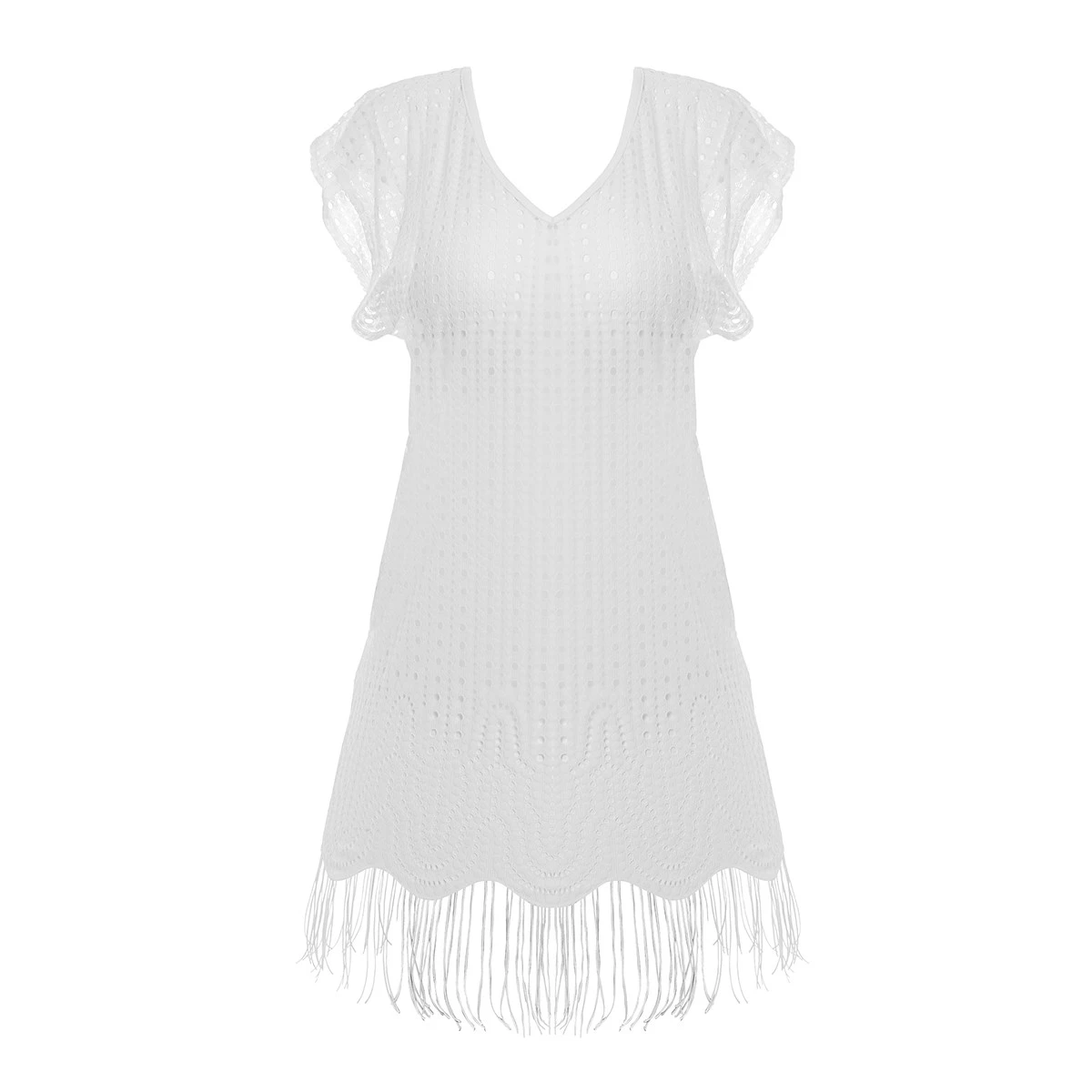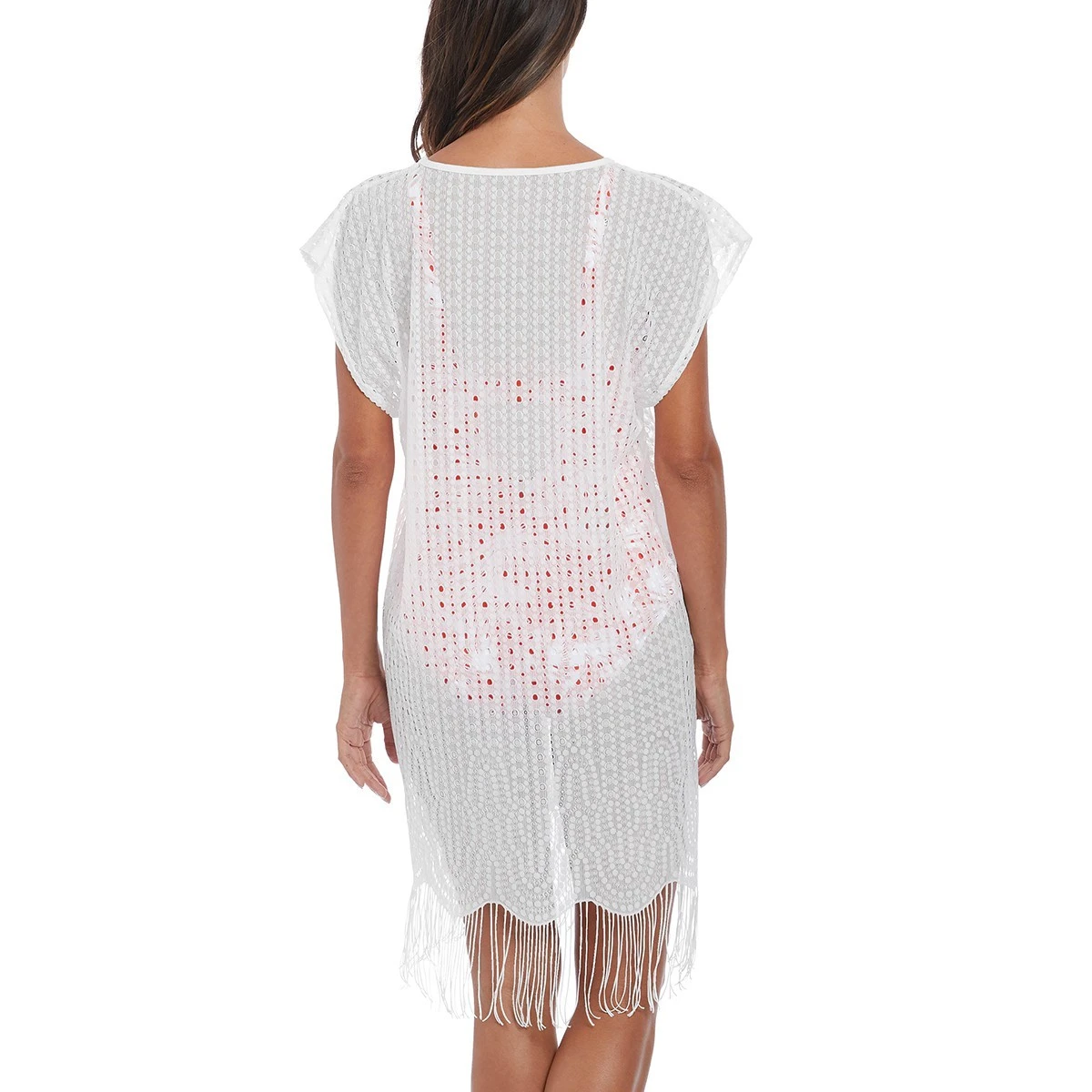 La tunique blanche effet crochet Antheia créée par Fantasie Swim est idéal pour compléter votre look de l’été ! On aime le joli décolleté V échancré et les manchettes très tendances. Coup de coeur pour les franges sur le bas qui allongent la silhouette. Cette robe de plage unie, est indispensable à votre garde robe de vacances.