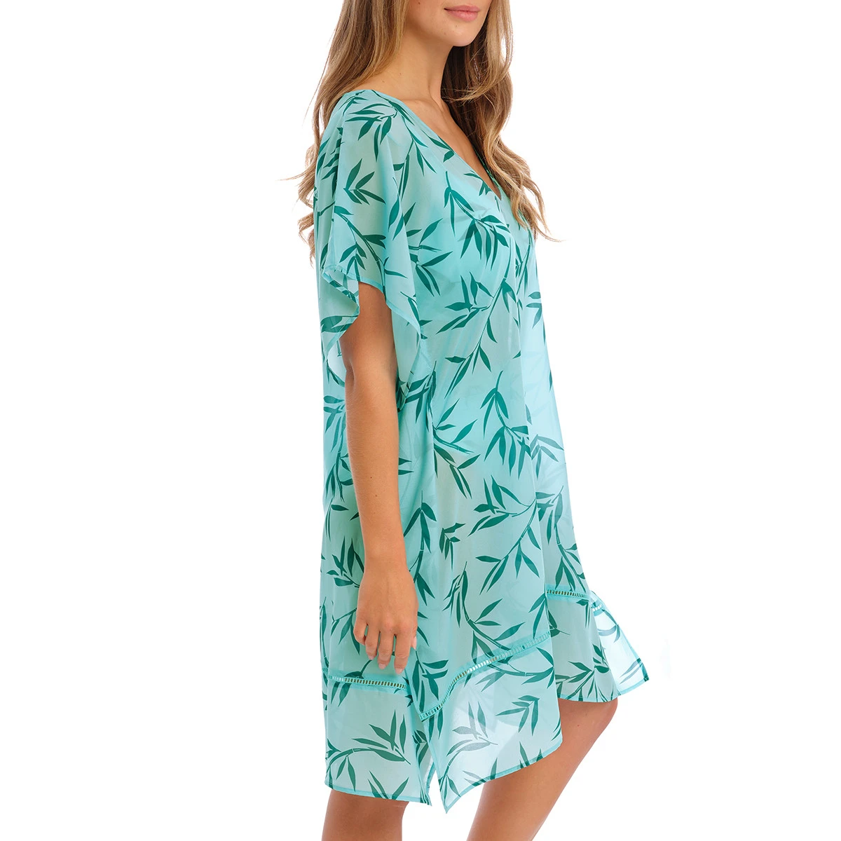 La tunique de plage Luna bay glacier de Fantasie Swim est parfaite pour votre prochaine escapade estivale ! On adore son imprimé feuilles de bambou d’inspiration orientale et son coloris très frais ! Cette caftan au décolleté en V est ornée d’un joli détail en point jour échelle sur le bas. Très confortable à porter grâce à sa coupe ample et son tissu fluide qui caresse la peau.