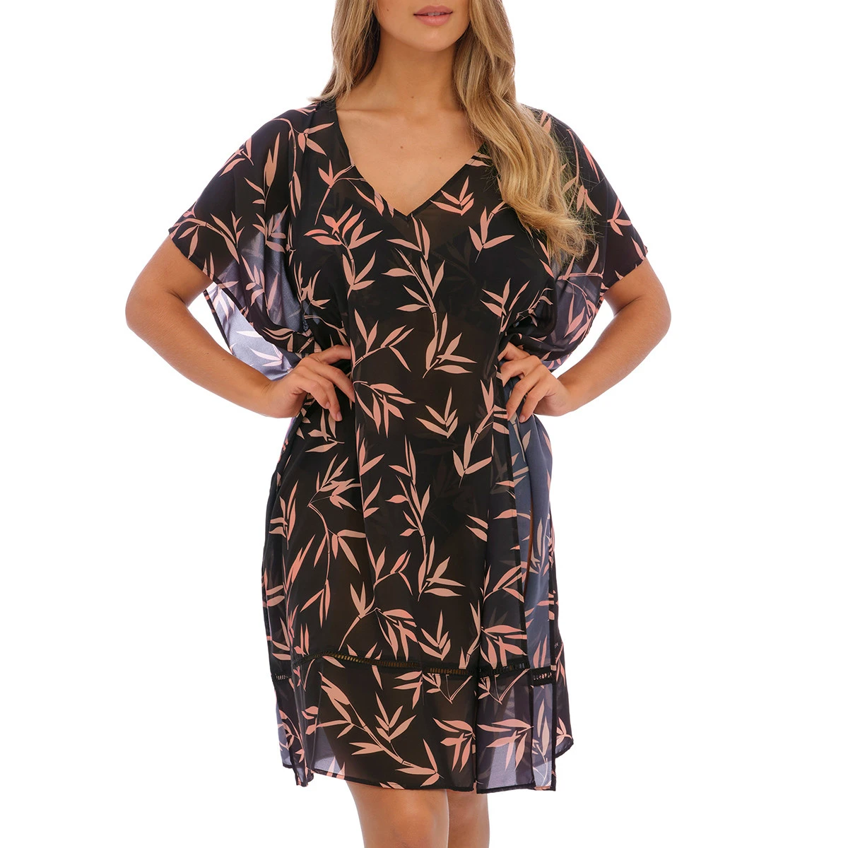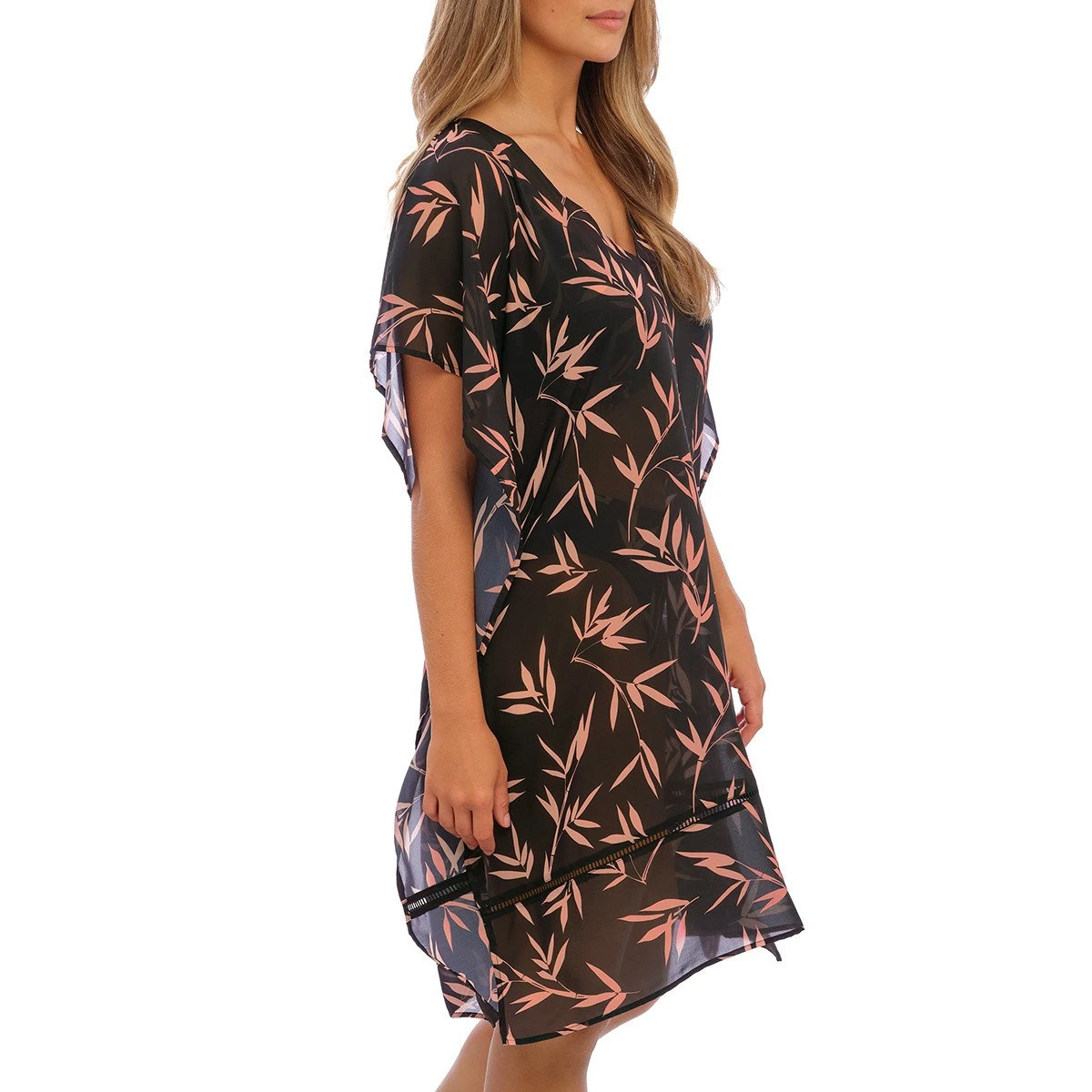 La robe de plage Luna bay lacquered black de Fantasie possède un imprimé bambou dans un style asiatique très chic. On adore le col V sur l’avant et les manches chauve-souris. Coup de coeur pour la légèreté du voile et pour le point jour échelle sur le bas. Cette tunique mi-longue fendue sur les côtés, est idéale pour flâner durant les beaux jours.